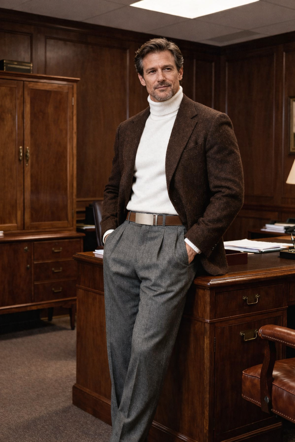 Men’s Mock Turtleneck Ribbed Knit Tee
