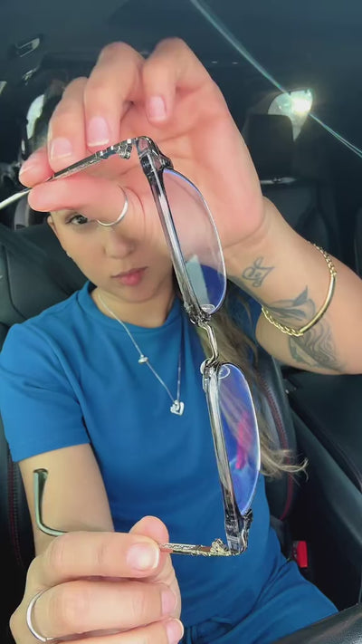 These glasses combine technical precision with fashion-forward details. The large-frame structure creates a striking presence that elevates your outfit instantly. Whether in the office or out socially, they deliver sophistication with a modern edge. A versatile accessory, they adapt easily to any occasion.
